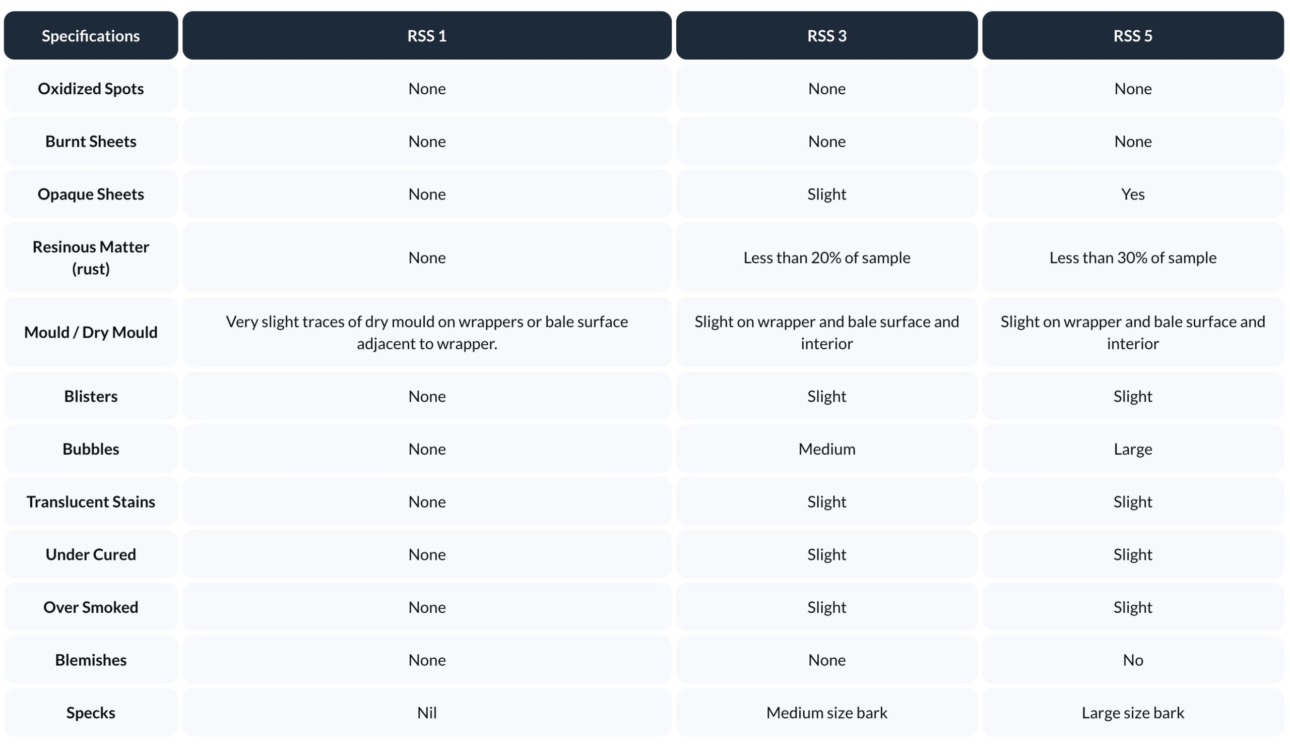As a rubber products supplier, we offer premium RSS Grades 1, 3, and 5—each graded according to strict visual and physical standards to suit diverse industrial applications. RSS 1 is our highest grade, free from oxidized spots, blemishes, and impurities, ensuring exceptional clarity and purity. RSS 3 and RSS 5 provide scalable options with slight tolerances for surface conditions like specks, mould, or bubbles, while still maintaining structural integrity.